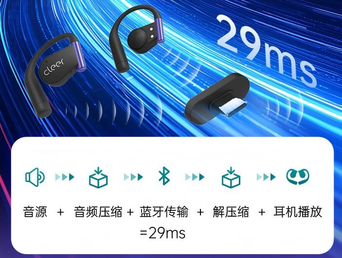 不僅比傳統(tǒng)耳機(jī)更舒適,Cleer ARC 5游戲Plus版的超低時(shí)延也是一大亮點(diǎn)。或許提到全鏈路29ms超低時(shí)延大家沒(méi)有什么概念,我們可以將其和眨眼時(shí)間進(jìn)行對(duì)比。普通人完成一次眨眼需要約100-400ms,而Cleer ARC 5的全鏈路延時(shí)低至29ms,遠(yuǎn)低于眨眼時(shí)間,意味著聲音傳遞的速度甚至快過(guò)了你的生理反應(yīng)。那么這一切是怎么實(shí)現(xiàn)的呢?