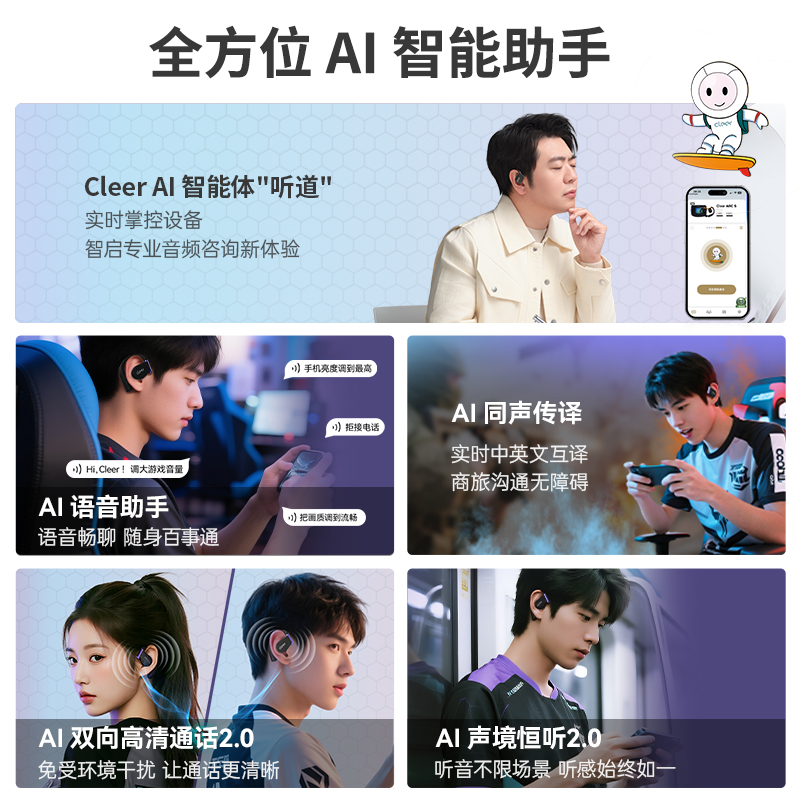 在人工智能浪潮的推動(dòng)下,智能耳機(jī)不再只是播放音頻的設(shè)備,而是逐漸成為深度融入日常場(chǎng)景,懂你所想、應(yīng)你所需的智慧生活伙伴。作為開(kāi)放式耳機(jī)的領(lǐng)軍品牌,Cleer自然也會(huì)牢牢抓緊這一優(yōu)勢(shì),自去年ARC 3開(kāi)創(chuàng)性推出六大AI功能后,今年ARC 5進(jìn)行了再升級(jí)。Cleer自主搭建專屬AI智能體——Cleer“聽(tīng)道”智能體。